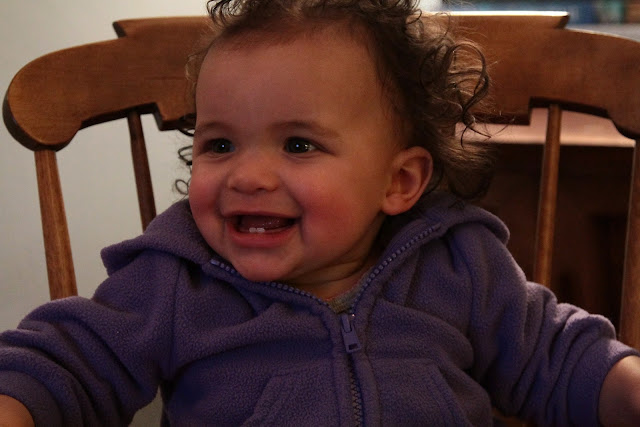 Tessa Jean is 10 months old today. I always tell my girlfriends who live out of town that she is more than her milestones, that it's hard for me to sum up "what's going on with her" in words or by listing off her achievements. I do like that my Lil Miss Independent has grown more attached to me lately, clinging to me when I try to put her down. I think our road trip bonded her to us even more because it was such an intense, hands-on time together. I love that she's become more affectionate. She will sit still longer so I can cuddle her in my lap and she'll move her little, open rosebud mouth toward mine for a kiss and wrap her little fists around my neck for a hug. She laughs a lot more now. She's still not walking but she is standing up on her own and she'll stay standing for a few seconds before plopping down on her booty. I secretly fear that she'll only accept pureed food for the rest of her life because she's been so slow to take to big people food. But there are no adults that I know of that require that all of their foods be put into a blender, so surely this will pass.