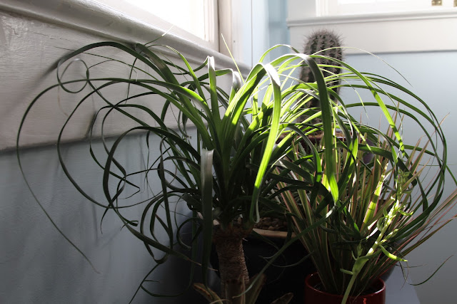New plants. When we got back from our trip, we found that a lot of my houseplants had died, since we'd left the heat off while we were gone. On Wednesday, I went to Lowe's to re-up on some greenery. I ended up getting even better plants. Weirdo plants.