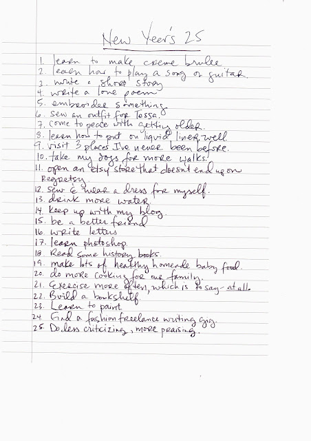 Taking a cue from A Beautiful Mess blogger Elsie, who does a birthday goal list every year, I've been working on this list of New Year's goals for about a month now. I actually already accomplished No. 5, in spades. I kind of went on a cross stitching crusade last month and whipped up a bunch of Christmas presents.