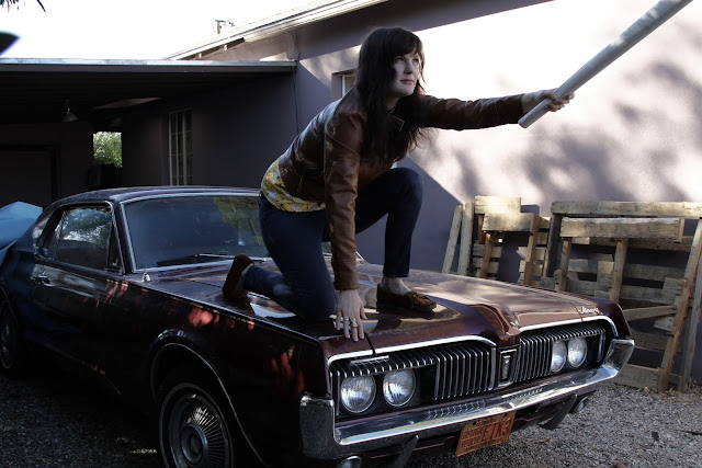 Molly and Rocky are renting their house from the amazing Neko Case. Even though she now lives in Vermont, her wicked car is still parked in their driveway. The very car that she perched on for the album cover of 2009's Middle Cyclone. I had to recreate the magic. What do you think?