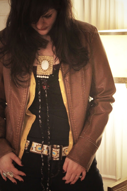 Here's what I wore last night. I just got this necklace yesterday at OMG (short for Old Made Good), the new shop that opened up in Riverside Village in East Nashville this last week. So I sort of based the whole outfit around my necklace.