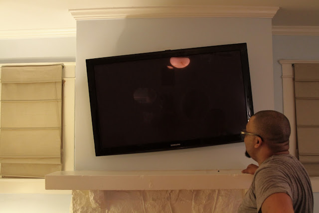 | This is us trying to figure out how we hung our TV up so that one side was four inches higher than the other. |