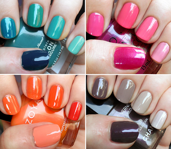 Get a bright manicure. I'm all about a beige or dark purple manicure, but there's something about a bright nail color that's a mood booster. Since I saw this on Into The Gloss, I've been inspired to paint every nail a different color, like I used to in junior high school. The manicures below are called "gradation manicures," which I think are really cool too, especially the blue-greens.