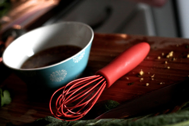 I’ve made a lot of changes to the original recipe, and you can play around with it to make it fulfill your own salad dreams. For example, I had this weird veggie called komatsuna from our CSA share, but it’s a lot like bok choy, so I used it. Although there’s a LOT of chopping here, I like that you leave the greens mostly raw, because it’s so refreshing and out of the ordinary. The first time I made it without the noodles, just as a salad, which is an option. But the noodles are great for sopping up all the yummy dressing, and to add a little warmth to the dish. Also, buckwheat noodles have many health benefits.