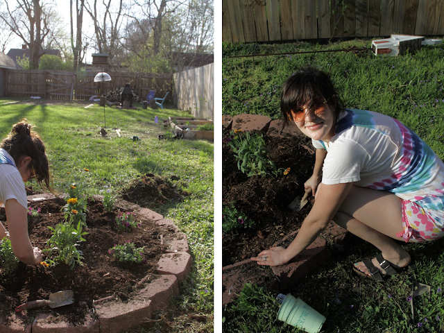 This year I played a much bigger role in the planting of our gardens (with the blisters to prove it) so I think I'll take more pride in the upkeep. Also, this time last year I was newly post-partum and having a postpartum meltdown; meanwhile Nekos was taking out his frustration and confusion outside with a rake and shovel. He sure made a pretty garden all by his lonesome, but I like it better now that we've dug in the earth together and put some pretty somethings there.
