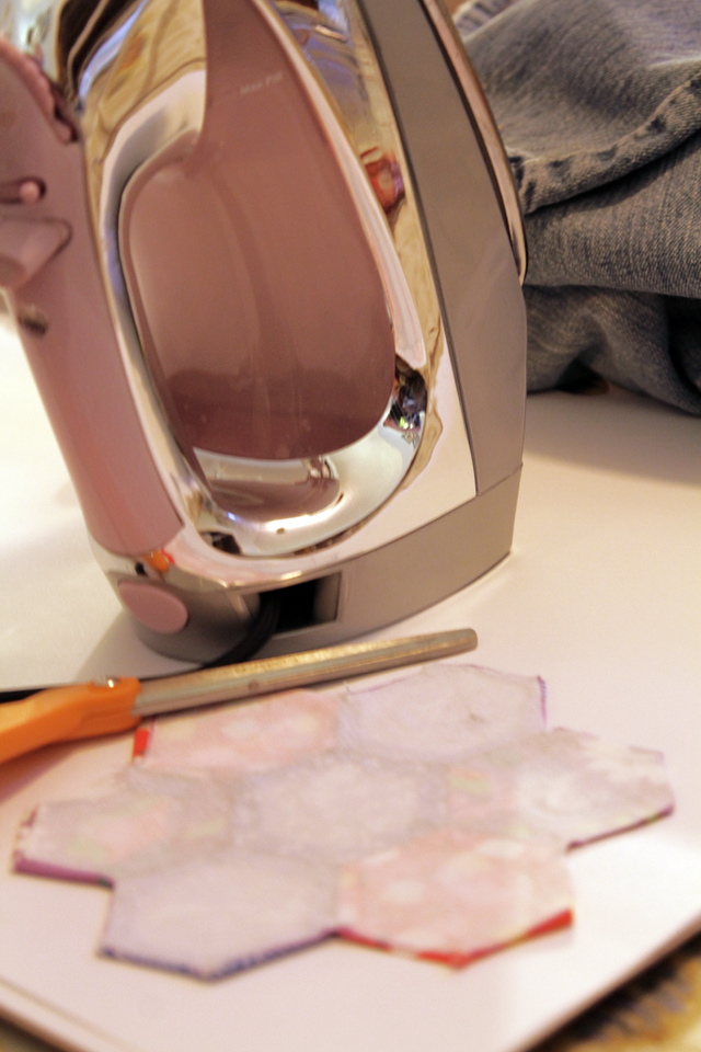 The inspiration: This was a total copycat project, taking inspiration from a Sew Mama tutorial about how to make hexagons using English paper piecing. I've posted before about wanting to try knee patches but that was before I came across this and fell in love with the idea of a hexagon flower knee patch. It just speaks to my '70s-loving soul.