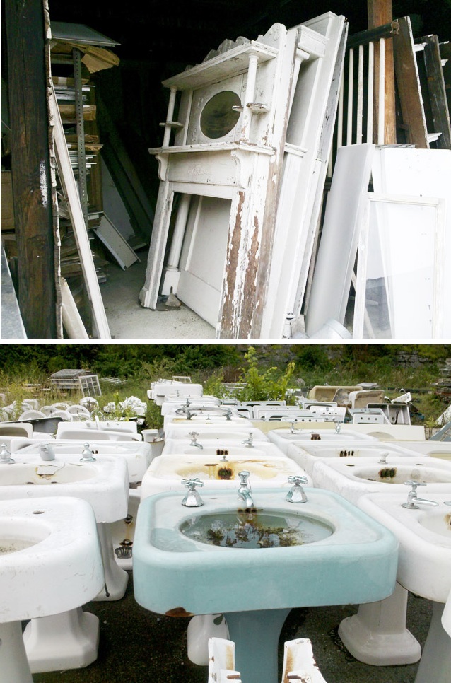 Shonna Sexton) posted the two pictures below on Facebook. I stared at them for the longest time, imagining the rows of old clawfoot tubs and stacks of discarded windows, mantles, and doors, thinking how I could use them.