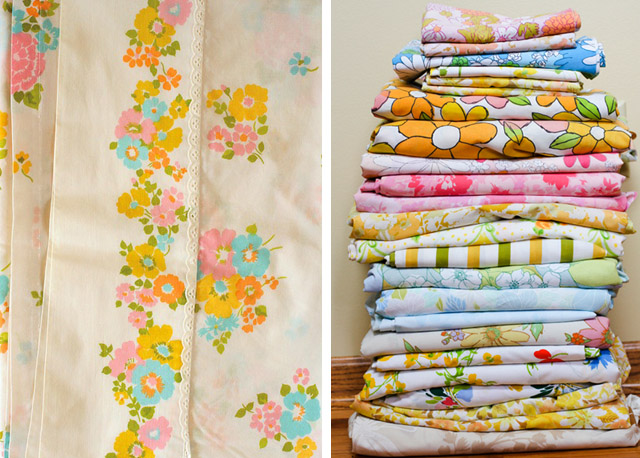 I can only reuse vintage pillowcases which, depending on how you look at it, could be gross but to me, they are broken in and oh-so-soft :) If you're in the market for buying vintage sheets for projects, Rachel at Smile & Wave is hosting a huge sheet sale tonight (although you probably already saw that :) - http://smileandwave.typepad.com/blog/2011/08/ive-been-thrifting-vintage-sheets-for-the-last-few-years-and-use-my-favorites-in-our-home-on-beds-in-our-kitchen-on-diy.html