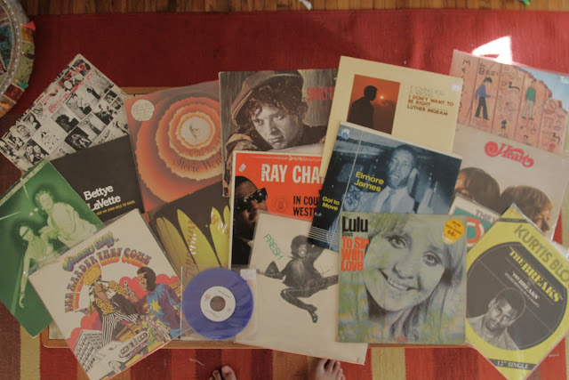 This week he stayed up until midnight one night to make me a wicked vinyl mixed CD--recording some favorite vinyl tracks onto his computer and then putting them onto CD. On some songs I can hear the crackle of the dust embedded into the grooves of our older records. This is the tracklisting of the "vinyl CD" he assembled: