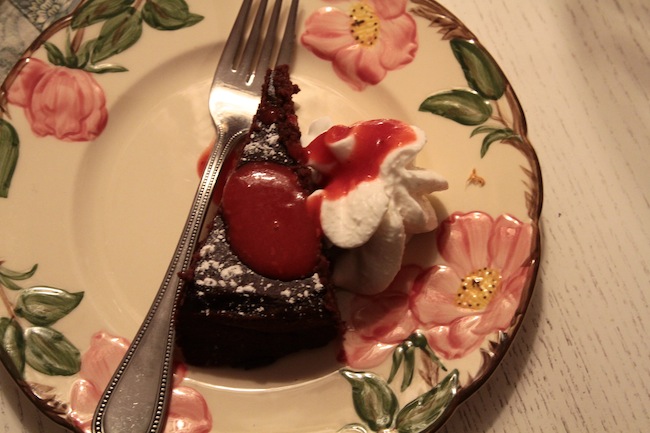 We rang in 2012 last night with a special surf-and-turf dinner party at our house with some new friends we're blessed to have made in 2011 and some old friends who we'll treasure forever. There were twice-baked potatoes as big as your head and a flourless chocolate cake made with two sticks of butter. My friend Faith brought a bowl of black-eyed peas for tradition's sake--and added yum. There was salad involved, too, but it was mostly obscenely decadent. And then there was champagne with raspberries.