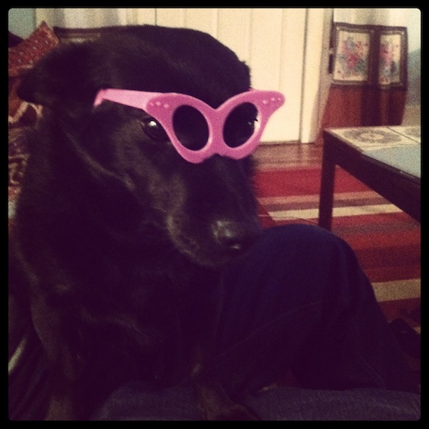 Dearest Hattie sporting Mrs. Potato Head's shades.