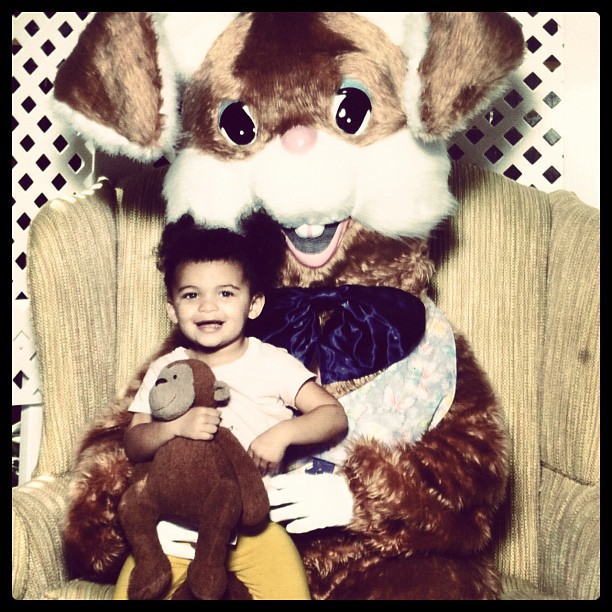 There was one bizarrely serene break in our day when we visited unintentionally with the Easter Bunny, who Tessa loved so much more than Santa. Have a look at this cheese, whydontcha?