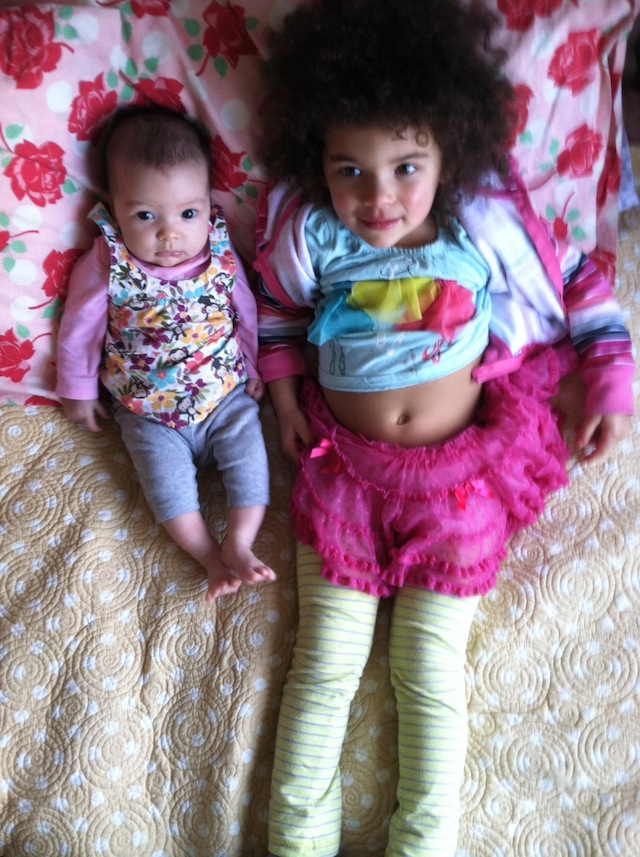 I love this little lady and this little age. I'm not a huge fan of the new newborn stage because it makes me anxious. This may sound strange, but I can't help but imagining how overwhelmed and freaked out newborns must feel, having been plunged out of their dark warm world into this crazy bright, cold place with people cooing all up in their faces and big sisters screaming and radios blaring. Just thinking of what that must have been like for Livvy kind of stressed me out. But now that she is more of this world, I feel more comfortable. Still, she seems like a stranger to me a lot of the time. But in the best sense of the word. I so anticipate this spring and summer with her, seeing her personality develop and watching her zip through some of those exciting milestones.