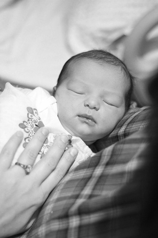 All that--every bit of it and then some--was worth it the second you slipped out of me, and I heard you cry out. That was at 2:25 p.m. You weighed 7 lbs, 11 oz., and you were placed immediately into my arms, and I started to cry. Your dad cut your cord and then came to stand over us, beaming. You were beautiful and perfect and very startled. I pressed your naked body against my naked chest and held you there for a long time.